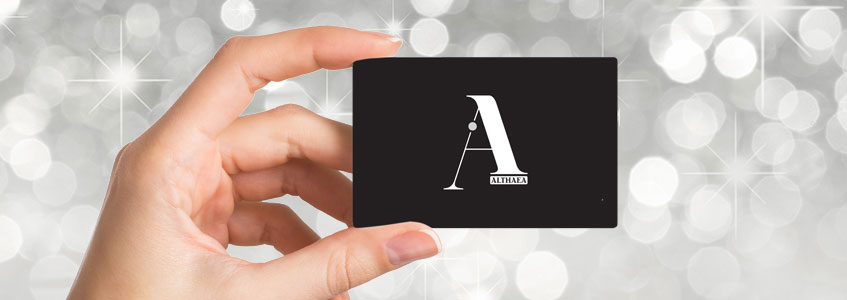 La Card di Althaea è un metodo per avere sempre in promozione i tuoi servizi del cuore. Ricaricando la tua Card di un importo a partire da € 50,00 potrai avere un credito aggiuntivo da usufruire all'interno di Althaea Beauty Day Spa per acquistare tutti i servizi e prodotti esclusi quelli già in promozione.